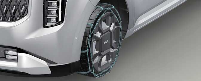 타이어 체인을 장착하고 약 0.5~1 km 정도 주행한 후에는 차체 손상 여부 및 안전을 위하여 체인의 장착 상태를 확인해야 하며 느슨할 경우에는 다시 조이십시오.