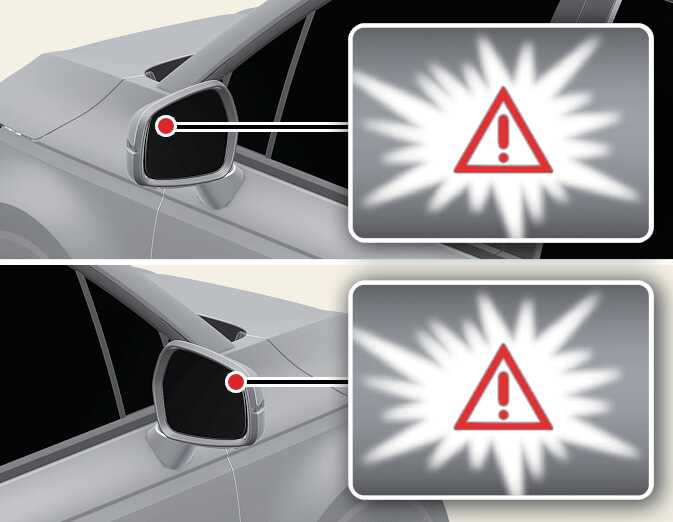 실외 미러(사이드 미러) 경고등이 깜빡이고 클러스터 등에 경고문이 표시됩니다.