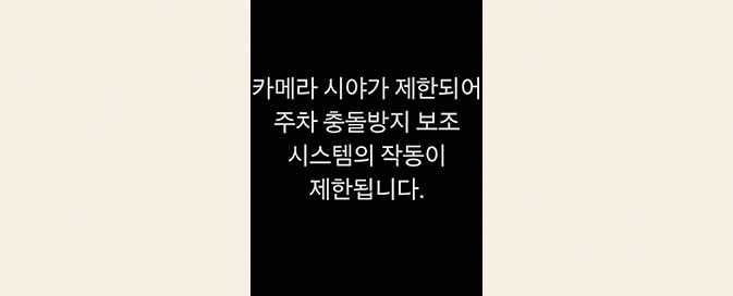 광각-후방 카메라, 후방 초음파센서는 차량 주변의 물체를 감지하는 센서입니다. 해당 센서에 눈, 비, 이물질 등이 묻으면 주차 충돌방지 보조가 일시적으로 제한되거나 작동하지 않을 수 있습니다.