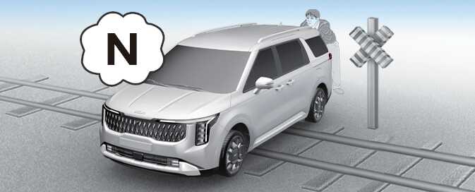 교차로나 건널목의 한 가운데에서 시동이 꺼졌을 때는 변속 위치를 「N」(중립)에 둔 후 주위의 가까운 사람들에게 도움을 받아 차를 밀어내어 안전한 장소까지 이동하십시오.