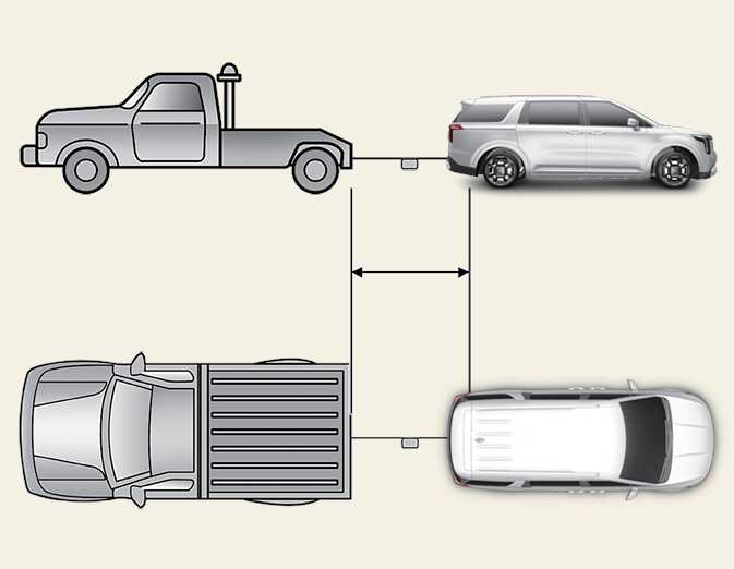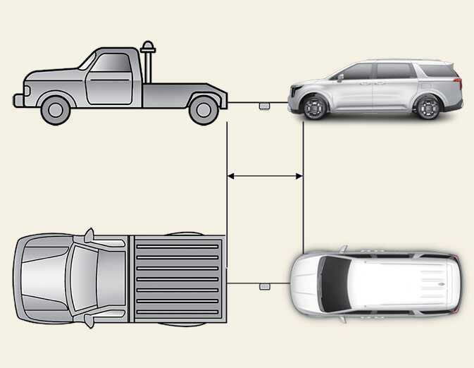 견인 시 운전자 상호 간에 연락을 하면서 스티어링 휠을 잡고 견인 차량과 같은 방향으로 조향을 하십시오.