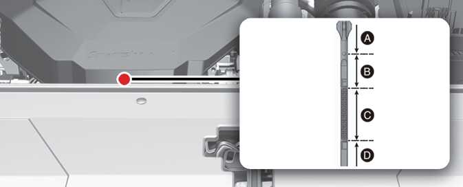 OKA4073008 - 오일양이 D 구간에 있다면 엔진 오일 주입구를 열고 C 구간 상위까지 오일을 보충한 후, 오일양이 규정량에 속하는지 레벨 게이지로 다시 확인하십시오.