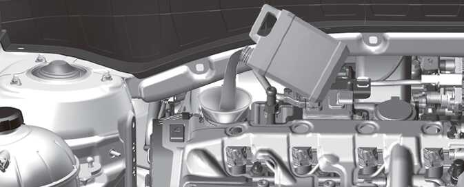엔진 오일은 엔진의 윤활, 냉각 및 각종 유압 부품을 구동하는 역할을 합니다. 운전 중 엔진 오일의 소모는 정상적인 현상으로 정기적인 엔진 오일양 확인 및 보충이 필요합니다. 또한 오일 성능 악화를 방지하기 위해 오일 교체 주기 내에 오일양을 확인하고 보충하십시오.