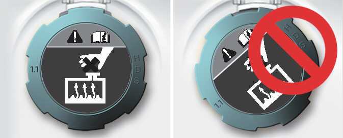 냉각수 보조 탱크 캡 표식(스티커)이 전방에서 똑바로 보이는지 확인하십시오.