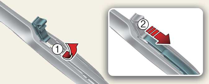 와이퍼 블레이드가 분리된 상태에서 와이퍼 암이 유리창에 닿지 않도록 주의하십시오. 유리창이 파손될 수 있습니다.