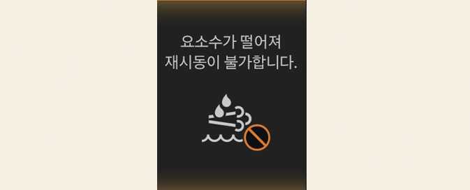 "요소수가 고갈되어 재시동이 불가합니다" 경고 메시지와 경고등이 표시되면 시동이 걸리지 않습니다. 즉시 요소수를 충분히 보충하십시오.