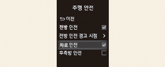 차로 안전: 차로 안전을 선택하면 차로 이탈이 감지될 경우 차로를 이탈하지 않도록 조향을 도와줍니다.