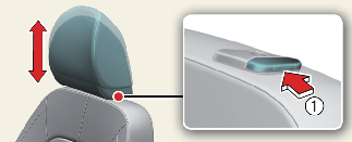 헤드레스트를 낮추려면, 잠금 해제 버튼을 누른 상태에서(2) 헤드레스트를 위에서 누르십시오(3).