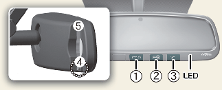 야간 주행 시 주·야 변환레버(3)를 운전자 방향으로 당기면 뒤 차량의 전조등 불빛으로 인한 눈부심을 줄일 수 있습니다.