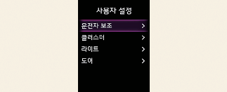 * 사용자 설정에 표시되는 설정 항목은 차량의 사양 구성에 따라 본 사용 설명서와 다르게 나타날 수 있습니다.