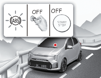 경고등이 꺼지지 않는 경우 또는 주행 후 다시 경고등이 켜지는 경우에는 ABS 장치의 고장이므로 자사 직영 서비스센터 또는 서비스협력사에서 점검 및 정비를 받으십시오.