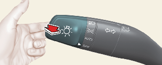 스위치를 클러스터 방향으로 밀어 놓는다. 또는 운전자 방향으로 당기고 있는다.(클러스터에 상향표시등 ( |