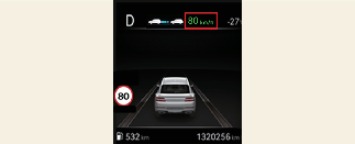 표시된 제한속도보다 높은 속도로 주행할 경우 표지판이 빨간색으로 켜집니다.