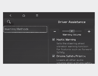 Ensure that Warning Methods you have set may apply to the Warning Methods of other Driver Assistance systems.