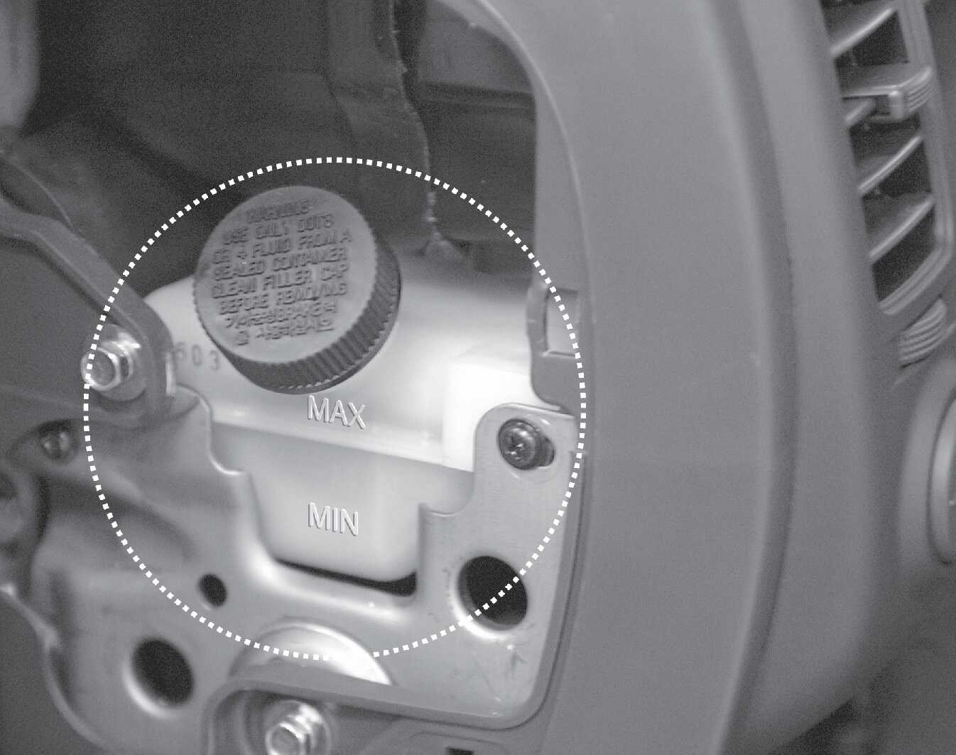정상적인 조건에서는 브레이크액이 급격히 소모되지 않습니다. 그러나 브레이크 패드와 라이닝이 마모되고 주행 거리가 누적됨에 따라 천천히 줄어듭니다. 주기적으로 브레이크액 탱크의 액량이 「MIN」과 「MAX」 사이에 있는지 점검하십시오.