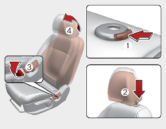 If you move the seatback forward with the headrest and seat cushion raised, the headrest may contact the sun visor or other parts of the vehicle.