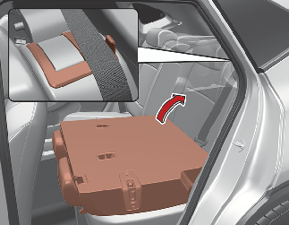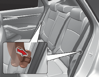When you fold the rear seatback, insert the buckle between the rear seatback and cushion. Doing so can prevent the buckle from being damaged by the rear seatback.