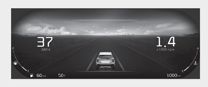 Theme A/B/C is the basic theme of the full LCD type cluster and provides different graphic styles depending on drive mode.