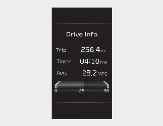 The trip computer mode displays information related to vehicle driving parameters including fuel economy, tripmeter information and total driving time.