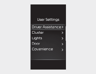 In this mode, you can change the settings of the instrument cluster, doors, lamps, etc.