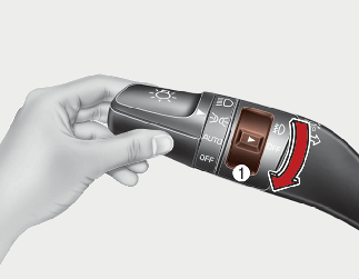 The fog lights will turn on when the fog light switch (1) is turned to the on position after the headlight is turned on.