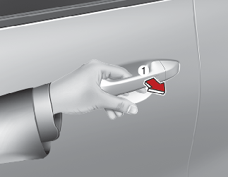 Pressing the button of the front outside door handle (for button type) or put your hand inside the door handle pocket (1) and touch the door unlock sensor on the inside of the outside door handle (for touch sensor type), with all doors (and liftgate) closed and locked, unlocks all the doors (and liftgate), if the 2 Press Unlock function is deactivated.
