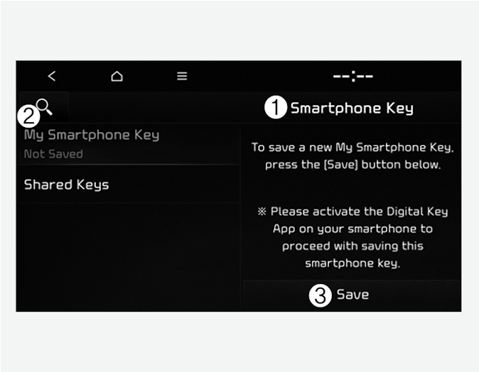 When there is a digital key (smart phone) already saved in the vehicle, the 'Save' menu is disabled. If you want to save a digital key again, refer to More Details and follow the deleting procedure first before saving a digital key.