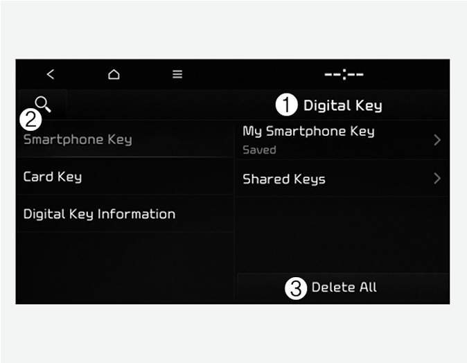 With the vehicle on, touch 'Setup→ Vehicle → Digital Key → Smartphone Key → Delete All' on the infotainment system.