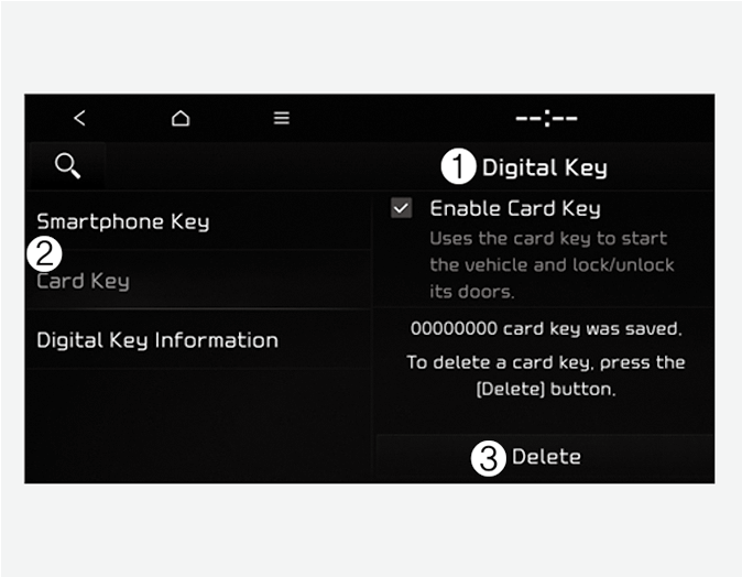 When the digital key (card key) is deleted, a message will appear on the infotainment screen or cluster.