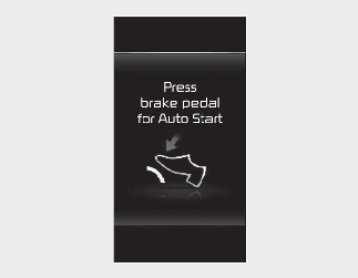 If you move the transmission lever from N (Neutral) to D (Drive) (Manual mode) or R (Reverse) without depressing the brake pedal after stopping engine automatically, the engine does not restart automatically and a warning chime sounds. Press the brake pedal for auto start.