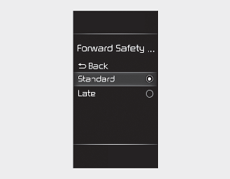 Use 'Standard' in normal driving conditions. If the Warning Timing seems sensitive, change it to ‘Late’.