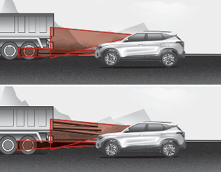 When the vehicle in front has heavy loading extended rearward, or when the vehicle in front has higher ground clearance, it may induce a hazardous situation. Always pay attention to road and driving conditions, while driving and, if necessary, depress the brake pedal to reduce your driving speed in order to maintain distance.