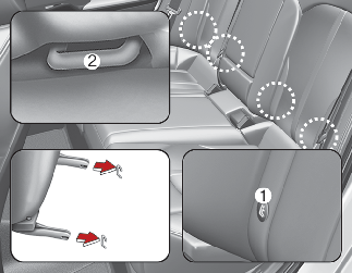 LATCH anchors have been provided in the left and right outboard rear seating positions. Their locations are shown in the illustration. There are no LATCH anchors provided for the center rear seating position.