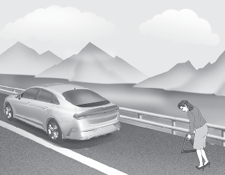 NEVER attempt to change a tire in the lane of traffic. ALWAYS move the vehicle completely off the road on level, firm ground away from traffic before trying to change a tire. If you cannot find a level, firm place off the road, call a towing service for assistance.