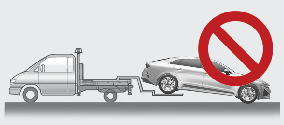 If you tow the vehicle while the front wheels are touching the ground, the vehicle motor may generate electricity and the motor components may be damaged or a fire may occur.
