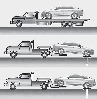 Do not tow the vehicle with four wheels in contact with the ground if it is the vehicle equipped with DCT or AT. Otherwise, the transmission will be seriously damaged. Also, make sure not to tow the vehicle connecting it with other vehicles including camper vans.