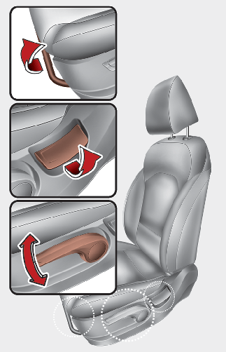 좌석의 전·후, 각도, 높낮이를 조절하여 올바른 운전 자세가 되도록 하십시오.