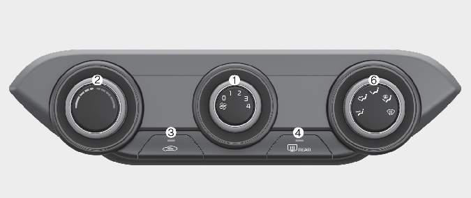 뒷유리(열선) 서리 제거 선택 버튼: 버튼을 눌러 뒷유리의 열선을 작동할 수 있습니다.