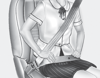 안전벨트의 골반띠 부분이 부드럽게 골반 부분을 지나게 해야 합니다.