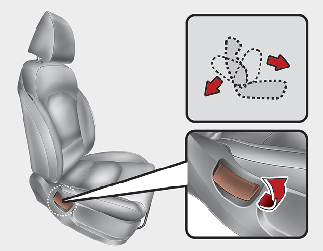 좌석에 앉은 상태에서 등을 앞으로 약간 숙이고, 좌석 바깥쪽에 위치한 좌석 각도 조절 레버를 위로 당기십시오.