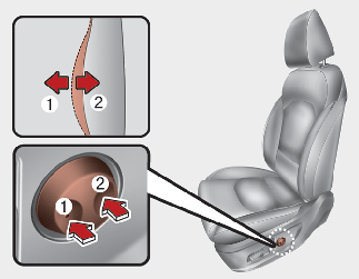 조절 스위치의 앞부분을 누르면 등받이 허리지지대가 앞으로 튀어나오고, 스위치의 뒷부분을 누르면 허리지지대가 뒤로 들어갑니다.