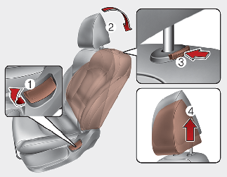 헤드레스트를 앞 방향으로 최대한 이동하면 자동으로 헤드레스트가 뒤쪽으로 이동합니다.