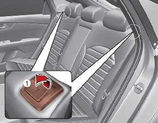 잠금해제 버튼(1)을 누른 상태에서 헤드레스트를 내려 조절하십시오.