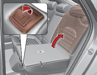 트렁크 상단의 뒷좌석 접이 레버를 당겨 등받이를 앞으로 접으면 좌석 공간을 적재 공간으로 넓게 사용할 수 있습니다.