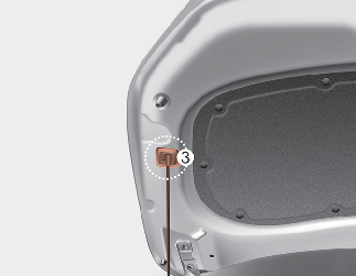 엔진룸 차체의 고정용 후크에서 지지대를 분리한 후 지지대 끝단을 후드 지지대 홈(3)에 넣어 확실히 고정시키십시오.