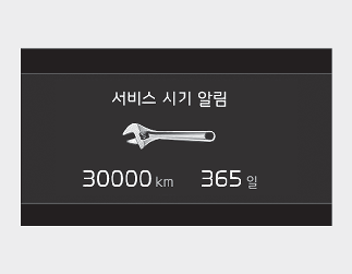 배터리 케이블 분리 또는 배터리 방전 시, 서비스 알림 설정값(주행 거리, 경과 시간)이 임의로 변경될 수 있습니다.