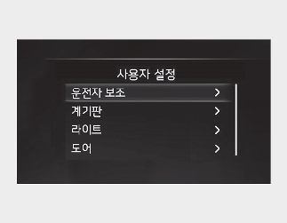 사용자 설정에 표시되는 설정 항목은 차량의 사양 구성에 따라 본 사용 설명서와 다르게 나타날 수 있습니다.