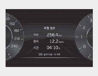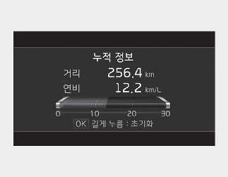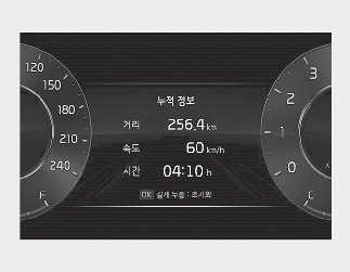 주행 정보가 표시된 상태에서 「OK」 버튼을 약 1초 이상 누르면 초기화됩니다.