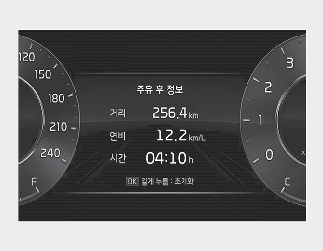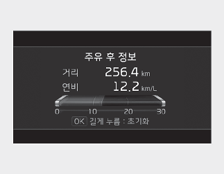주유 후 정보가 표시된 상태에서 「OK」 버튼을 약 1초 이상 누르면 초기화됩니다.
