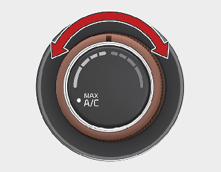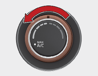 「MAX A/C」을 선택하면 에어컨과 실내 순환/외기 유입 모드는 임의로 전환할 수 없습니다. 풍량 조절 노브로 풍량을 설정하십시오.
